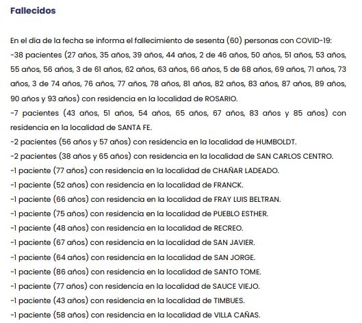 Además, informaron el fallecimiento de 60 personas, siete de la ciudad capital.