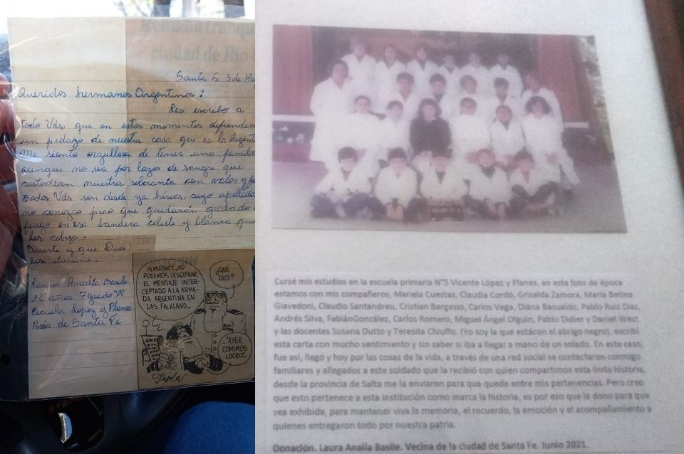 Después del emocionante reencuentro, aunque de manera virtual, Laura junto a su hermano, el diputado Checho Basile, hicieron las gestiones para traer la carta a Santa Fe y llevarla al museo del Centro de Ex-Soldados Combatientes de Malvinas.