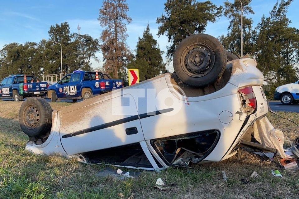 Un gran accidente se produjo este jueves en el acceso norte de la autopista Santa Fe-Rosario, a la altura del Club de Campo Colón donde un auto quiso esquivar a otro que se metió en el mismo carril, perdió el control y terminó volcando.
