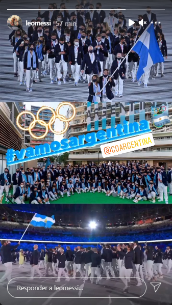 Lionel Messi manifestó hoy su apoyo para la delegación argentina con un mensaje en sus redes sociales durante la ceremonia de inauguración de los Juegos Olímpicos de Tokio 2020.