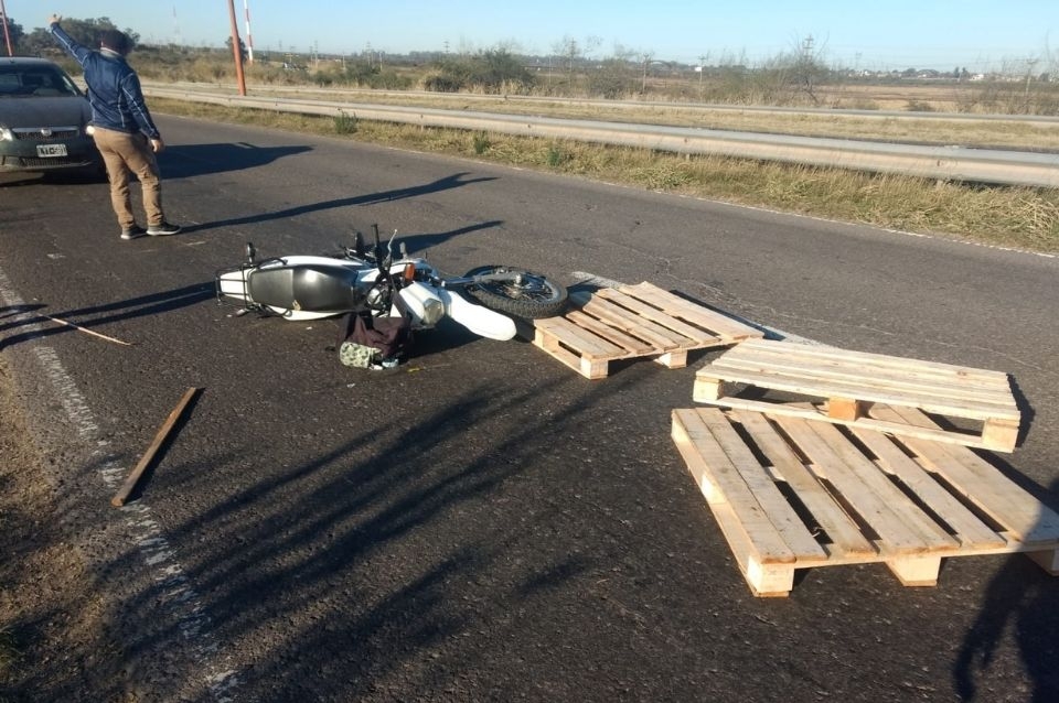 Según consta en el reporte policial, personal del Comando Radioeléctrico que estaba patrullando la zona, se encontró con un accidente de tránsito en el carril de sentido sur-norte de la Av. Circunvalación, a la altura de calle Entre Ríos. Allí vieron a un hombre tendido en la banquina junto a un motovehículo que habría impactado con varias tarimas que momentos antes se cayeron de un camión que las transportaba.