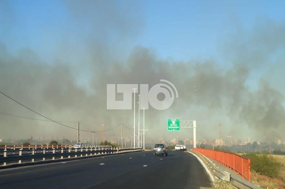 Las quemas de pastizales se dan en Av. Circunvalación en el cruce con la autopista, y en la ruta 168 a la altura del distrito costero La Guardia. Estos son los focos más importantes, que al iniciarse son pequeños pero se van extendiendo por la acción del viento y la sequía.