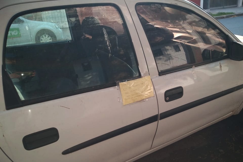 El vehículo, que está estacionado en barrio Constituyentes tiene un mensaje que dice: "No me robes más, no tengo ni un peso. Soy docente no millonaria, sino lo guardaría en una cochera".