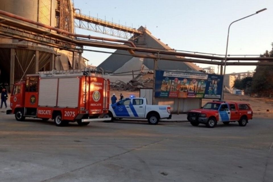Según las primeras informaciones brindadas, el derrumbe se produjo por causas no determinadas en una de las celdas de almacenamiento de granos, por lo que dos obreros sufrieron heridas.
