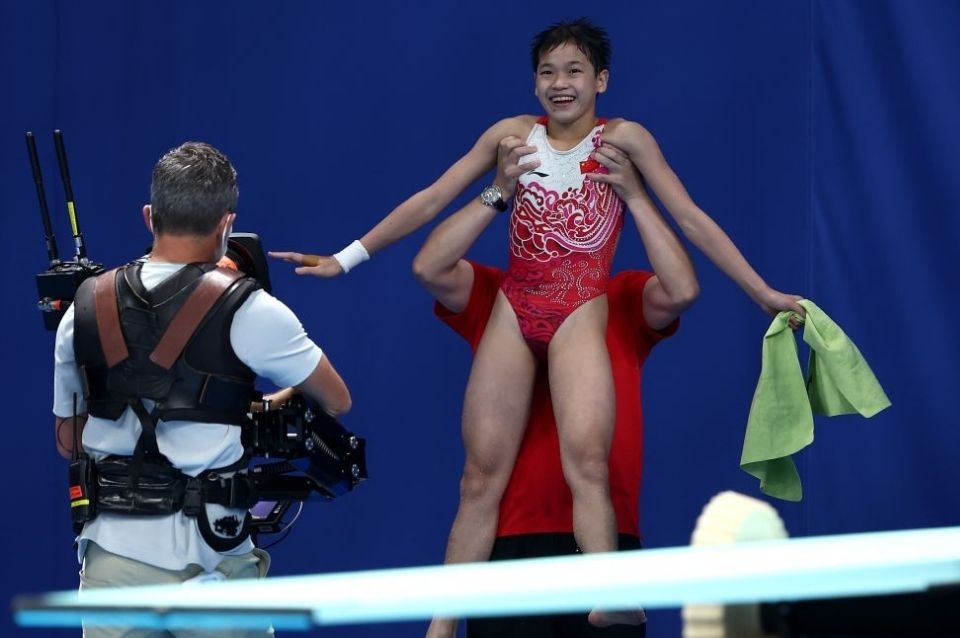 La china Hongchan, de 14 años, ganó el oro en clavado