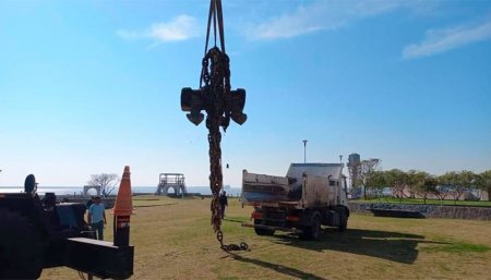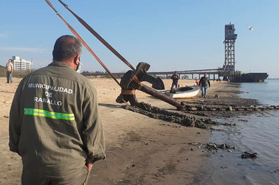 Un ancla y 50 metros de cadenas fueron extraídas del lecho del Río Paraná a la altura del kilómetro 324 margen derecha en medo de la histórica bajante de esa vía navegable. Desde el 30 de junio el nivel de profundidad del Paraná en el puerto de Ramallo según registros de la autoridad náutica no supera el medio metro.