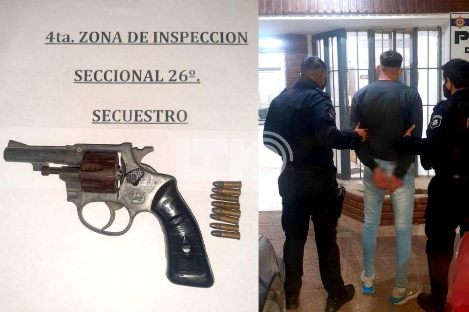Tras haberle efectuado el correspondiente cacheo palpareo, los uniformados obtuvieron el secuestro de un revólver calibre 22 largo con tambor de ocho alvéolos con carga completa.