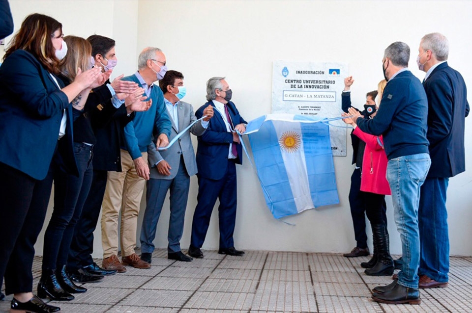 Sobre el centro en el que se cursarán carreras de universidades nacionales vinculadas a la innovación y el desarrollo tecnológico, cuya sede fue construida por el municipio de La Matanza, el jefe de Estado manifestó: "Tenemos que celebrar que un lugar de esta naturaleza se acerque a los vecinos para que sus hijos puedan estudiar sin necesidad de trasladarse".