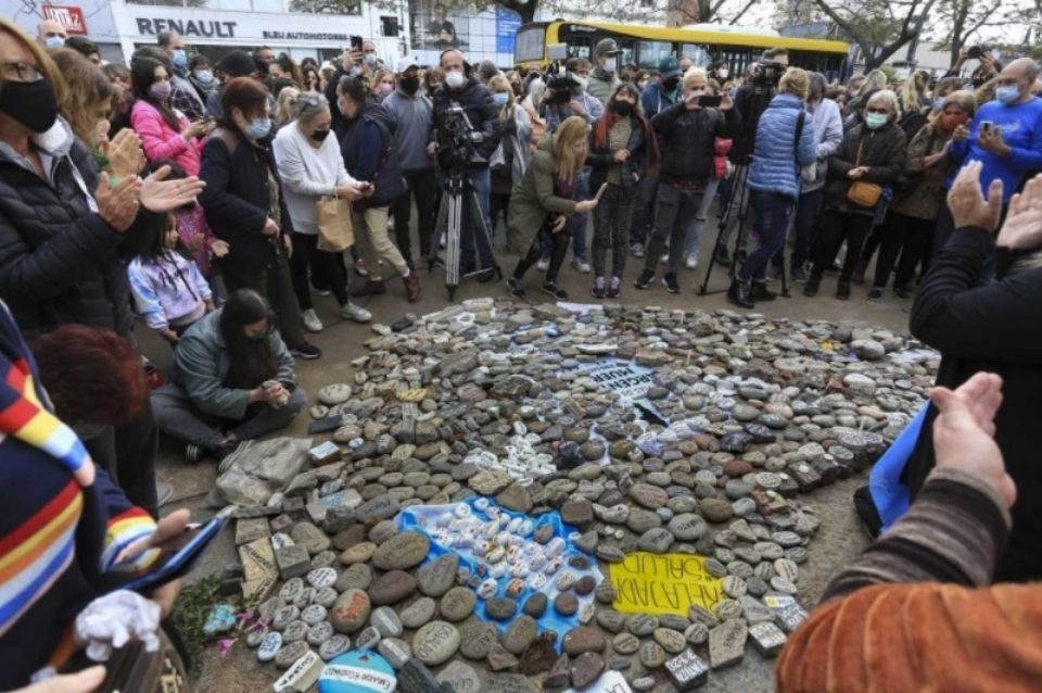 Familiares y amigos de personas que fallecieron por Covid-19 en la Argentina concretaron la denominada "Marcha de las piedras", en la Casa Rosada y la Quinta de Olivos, con la que homenajearon a las víctimas y protestaron contra el Gobierno nacional por el manejo de la pandemia.