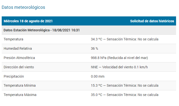 Según los datos del Centro de Información Meteorológica de la FICH, la temperatura máxima alcanzó los 34,5ºC en la siesta de este miércoles. Mientras que las condiciones son estables y con un cielo despejado.