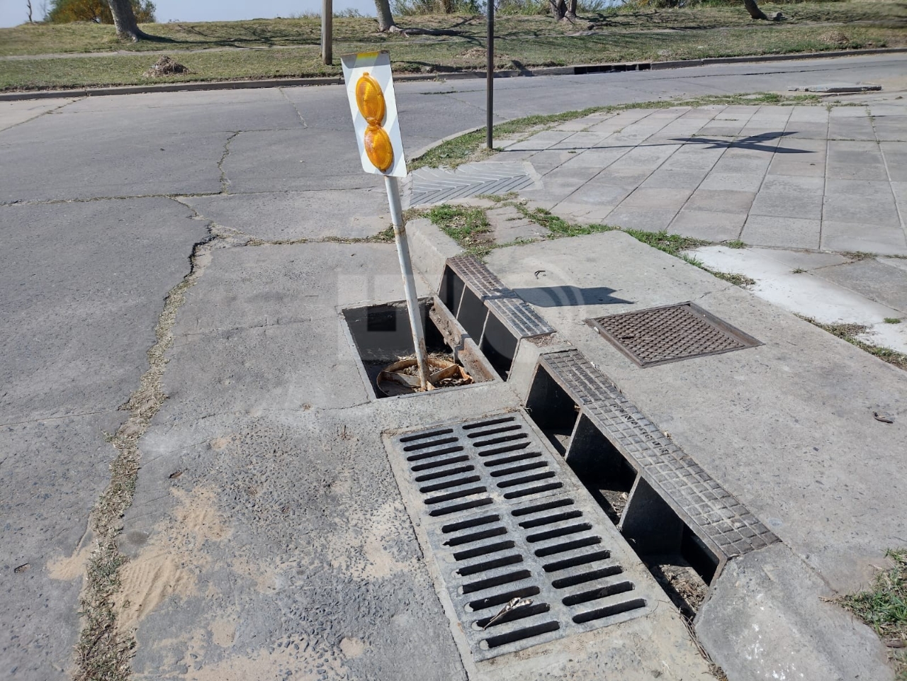 Este fin de semana, la situación llegó a tal punto que desde la vecinal debieron señalizar las alcantarillas al descubierto para que no se produzcan accidentes. "Cada rejilla mide 50 centímetros y hay tres, así que queda un pozo bastante importante y peligroso de un metro y medio", comentó la presidenta de la mencionada entidad, Estela Santa Cruz.