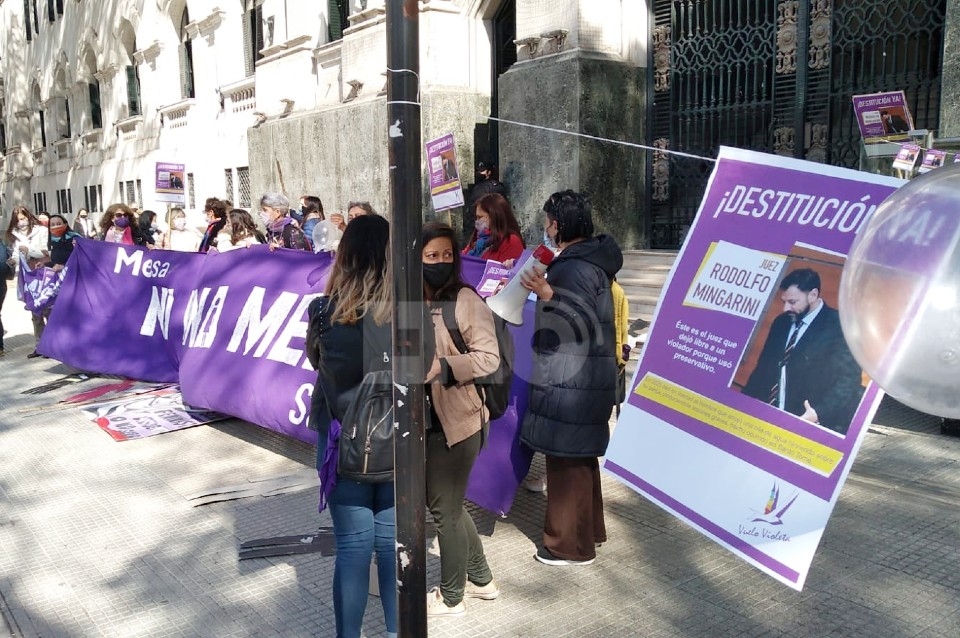 El colectivo de mujeres de Santa Fe sigue reclamando que se abra el jury al juez Mingarini y que se lo destituya de su cargo, por el escandaloso fallo en el que dejó en libertad a un violador por considerar como atenuante el uso de preservativo. Este mediodía, integrantes de Ni Una Menos volvieron a manifestarse en la puerta de Tribunales.