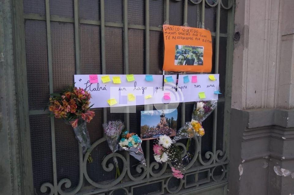 Además de suspender las actividades en el día de la fecha y declararse tres días de duelo, alumnos de la institución se acercaron para pegar carteles y dejar flores en la puerta recordando a quien era una figura muy querida dentro de la EIS.