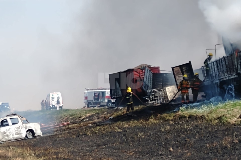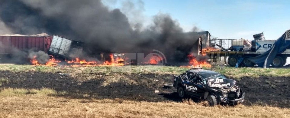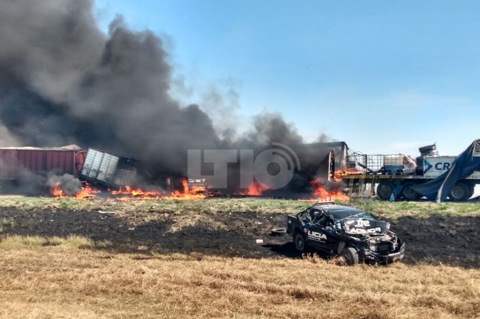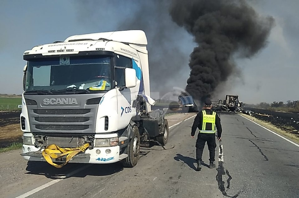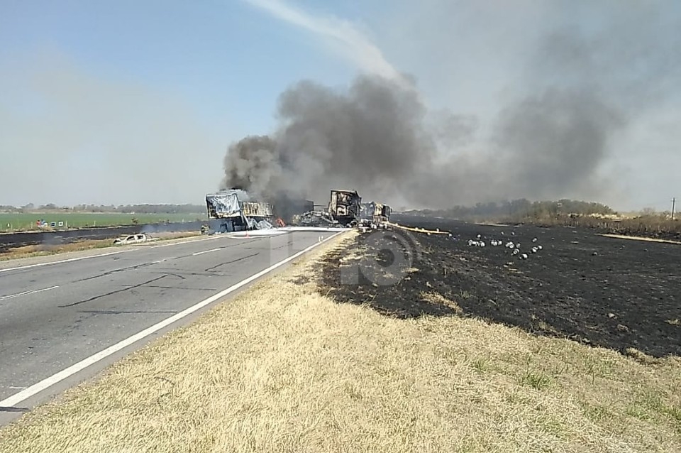 Fuentes oficiales detallaron que los vehículos siniestrados fueron un camión Scania con semirremolque cargado con caños plásticos, cables e insumos para una empresa minera, otro camión con acoplado que llevaba cervezas y barriles de chop, y un tercer camión cerealero. Tanto el semirremolque del primero como el segundo vehículo en su totalidad se incineraron en el asfalto.