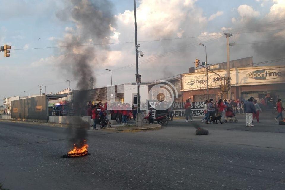 Un grupo de vecinos de barrio Santo Domingo realizan una protesta en inmediaciones de calles Blas Parera y Ayacucho. En estos momentos, cortaron el tránsito con neumáticos quemados y sólo dejarán circular por una mano.