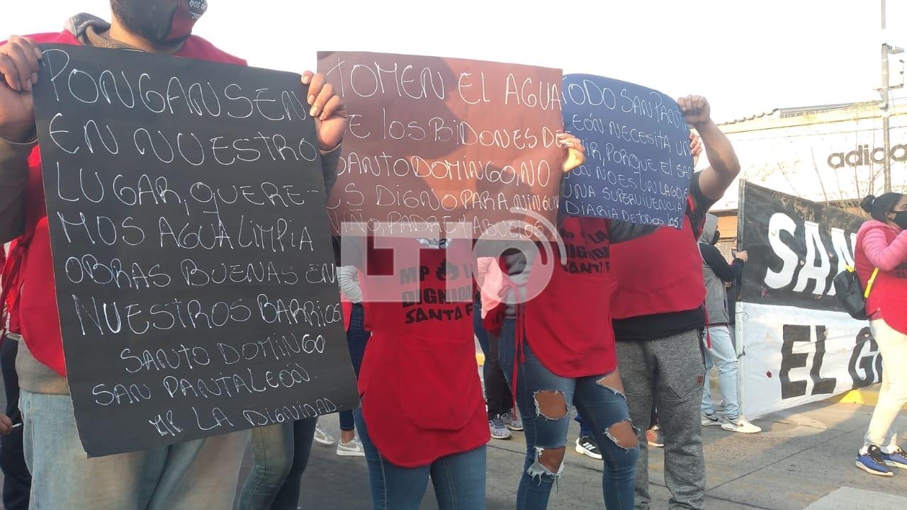 También participan de la manifestación vecinos de barrio San Pantaleón, que se solidarizan con la situación, pero que también piden por la solución de un situación poco higiénica y saludable que tienen en un zanjón entre las calles Derqui y Estrada.