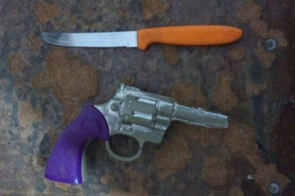 Al llegar, revisaron en los alrededores y dieron con el supuesto ladrón, y tras realizarle el correspondiente cacheo, encontraron una réplica de revólver y un cuchillo.