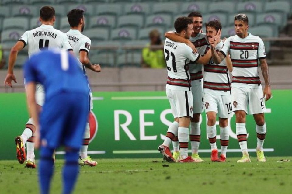 Portugal, sin su figura Cristiano Ronaldo, goleó hoy a Azerbaiyán por 3 a 0, como visitante, en un encuentro correspondiente a la sexta fecha del grupo A de las Eliminatorias europeas para el Mundial de Qatar 2022.