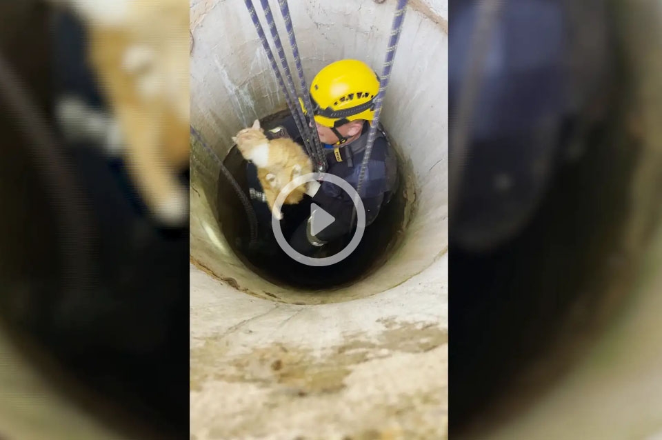 En el video se ve al animal y a uno de los brigadistas salir del pozo. Tras concretarse el rescate, el felino -que salió en brazos de uno de los participantes del operativo- se mantuvo inmóvil y shockeado durante algunos instantes. No obstante, los responsables del salvataje aclararon que el gato se encontraba en buen estado en general.