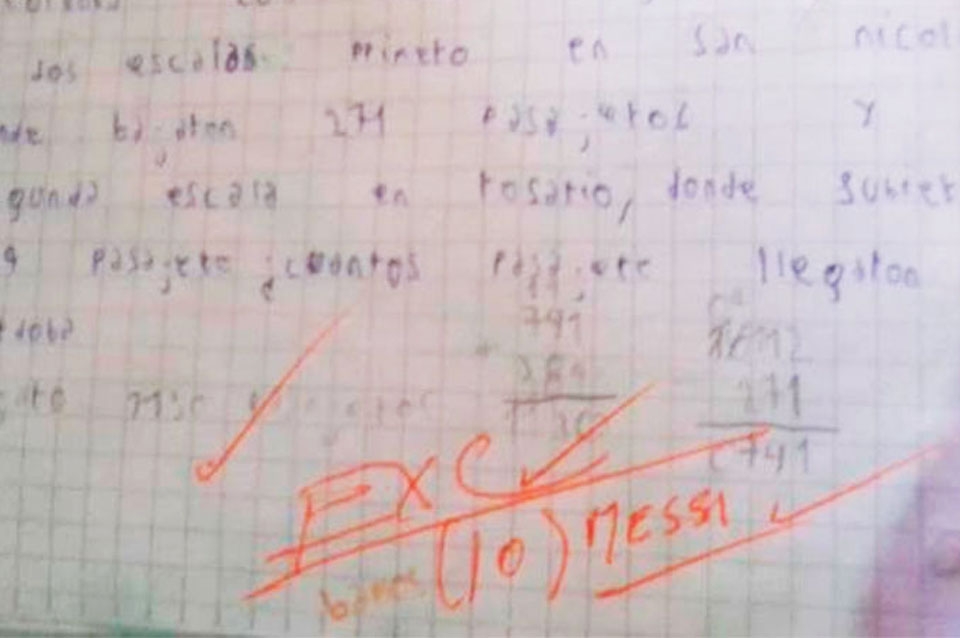 Viral: un niño se sacó un “10 Messi” en una prueba de matemáticas