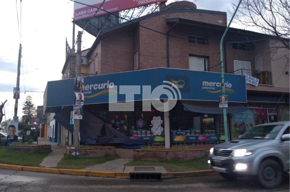 LT10 pudo constatar que el viento también generó destrozos en algunso toldos de negocios.
