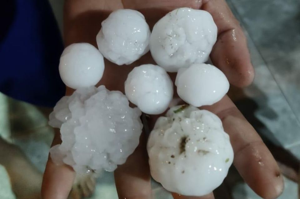 Promediando las 3 de la mañana, un fuerte temporal se levantó en la localidad vecina con fuertes vientos que causaron la voladura de toldos y ramas. Pero la sorpresa fue el granizo de grandes dimensiones que se precipitó durante unos minutos.