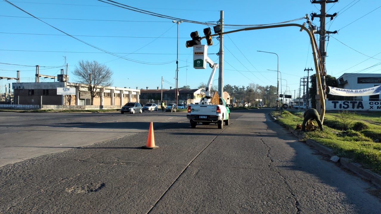 Durante la madrugada, un accidente de tránsito dejó muy dañado a un semáforo de en Aristóbulo del Valle y Gorriti.