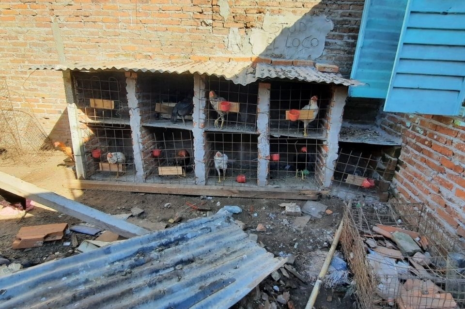En el lugar, funcionaba un criadero clandestino de gallos de pelea. Encontraron aproximadamente 25 gallos, que se encontraban cada uno en jaulas individuales, con indicios de maltrato animal, sin alimento ni agua.
