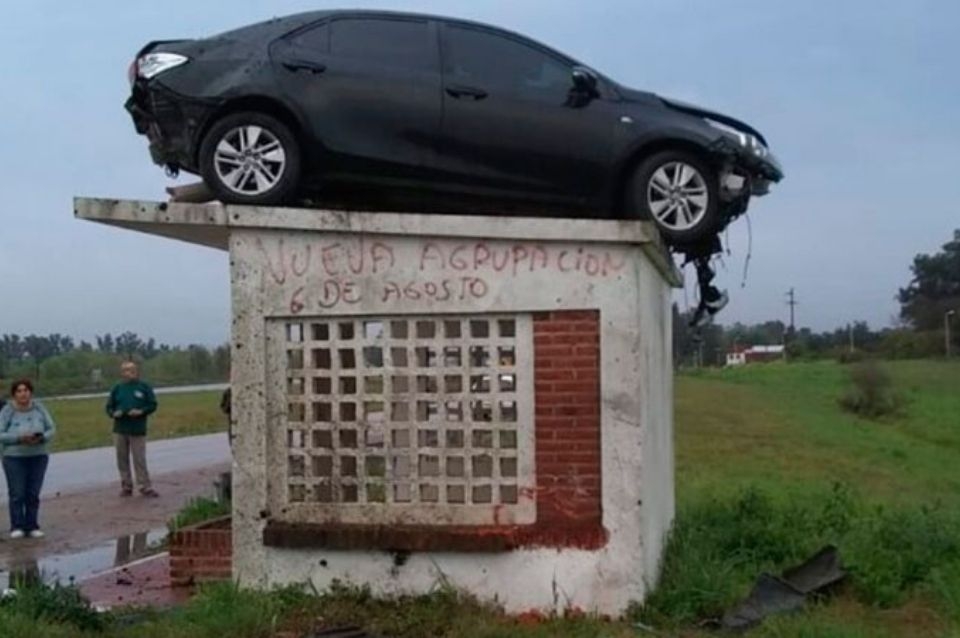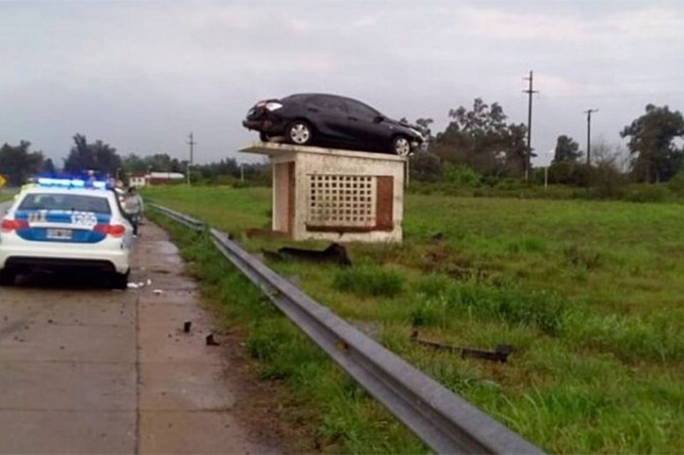 El siniestro fue tan inusual que el Toyota terminó sobre una garita de colectivos a la vera del trazado vial.