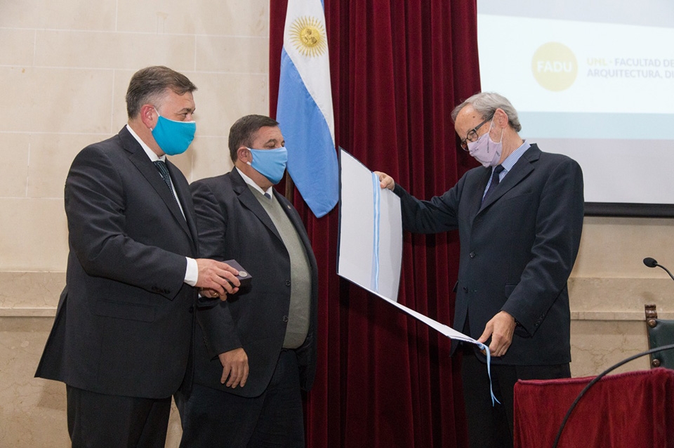 Y destacó que el arquitecto Liernur se convierte en el 37º Doctor Honoris Causa de la UNL, a propuestas de la Facultad de Arquitectura, Diseño y Urbanismo y con el apoyo del Consejo Superior.