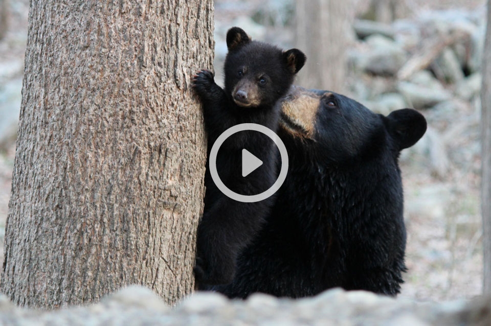 Betsie Stockslager, maestra de esa primaria, captó el momento en que la madre anima al osezno a intentar deslizarse por uno de los toboganes hasta que finalmente lo consigue.