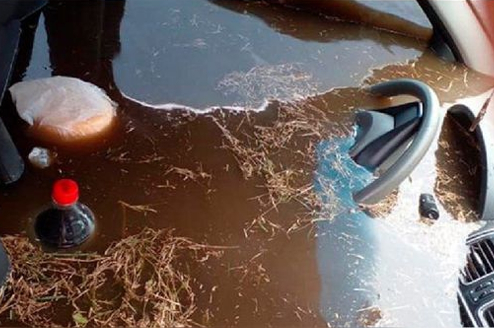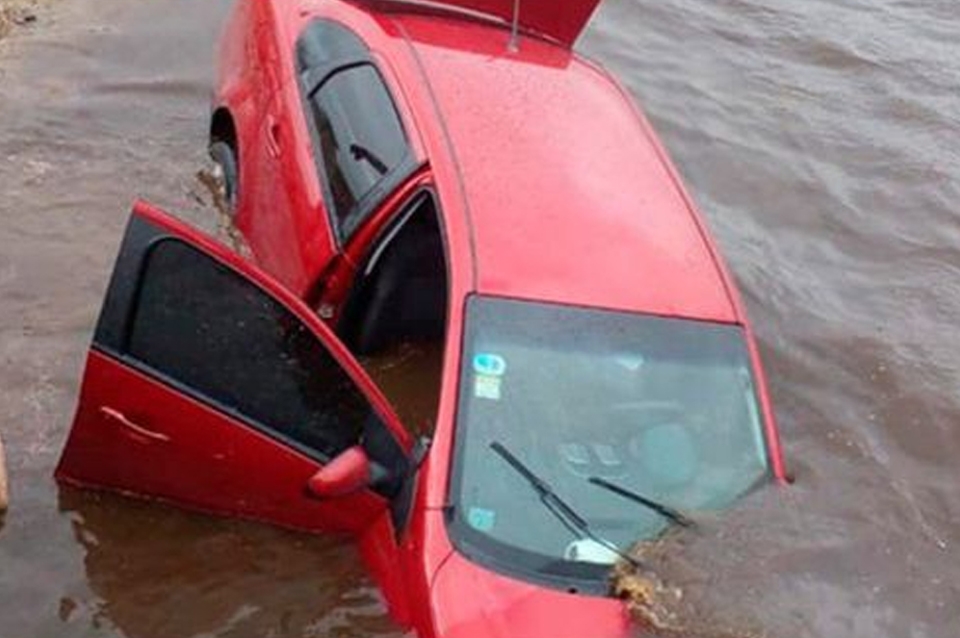 Como se ve en las fotos, el auto quedó completamente tapado por el agua, aunque antes de que se hunda, las personas que iban dentro del coche pudieron sacar sus pertenencias de valor. La maniobra por parte del conductor no consiguió otro destino que no fuese el río. Los dos hombres salieron ilesos del auto.