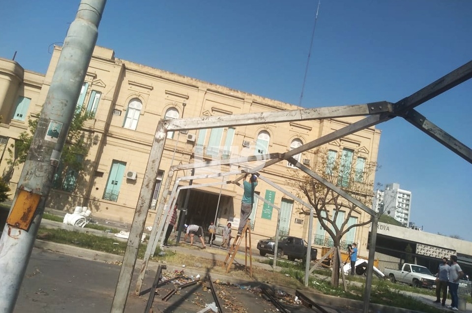 Este lunes se realizó el operativo de desmantelamiento de la manga que unía el hospital Cullen con el de campaña que fue instalado para cumplir con la alta demanda de camas que había en la ciudad de Santa Fe y la región debido a la segunda ola de coronavirus.