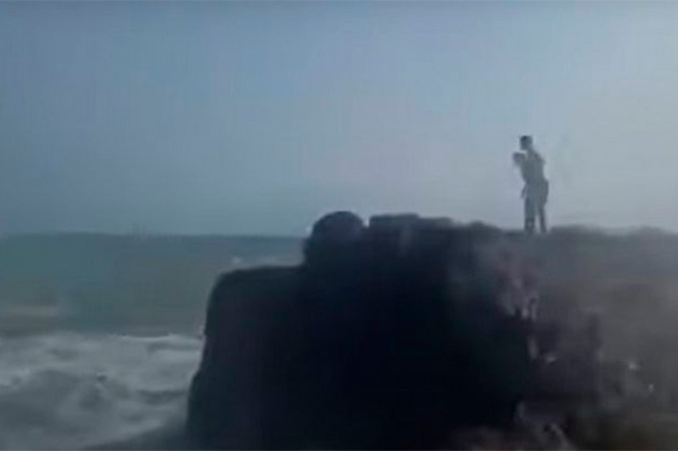 La amiga que graba la angustiosa escena corre hacia ellos. Desde muy cerca observa cómo están encaramados a una de las piedras, pero el fuerte oleaje no les da una tregua para ponerse a salvo de su imprudencia.