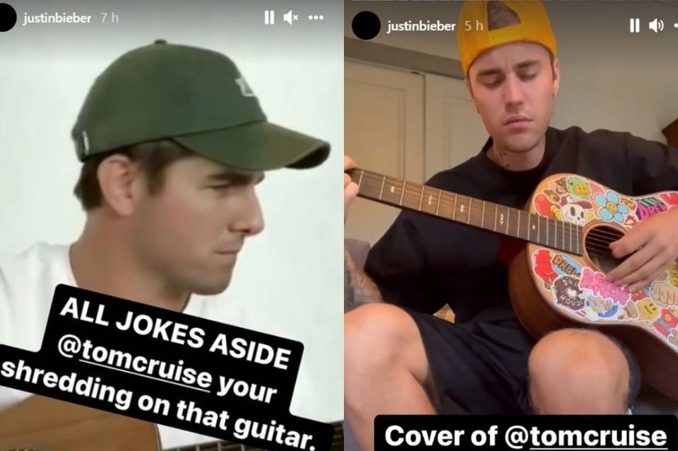 En numerosas historias en su cuenta de Instagram, Bieber elogió al actor mientras compartía imágenes de lo que él creía que era Cruise tocando la guitarra. "Estoy impresionado con tus habilidades con la guitarra", escribió el cantante, antes de reiterar su deseo de pelear con el actor.