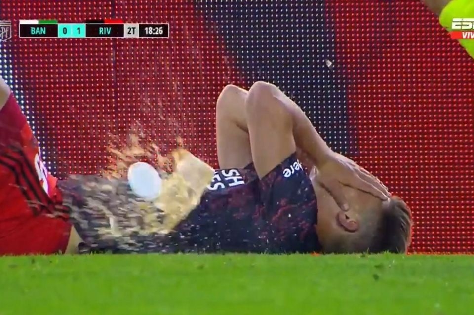 El repudiable incidente se registró tras caer tendido el atacante visitante a un costado del campo, por una fuerte infracción recibida, muy cerca de la tribuna lateral 'Eliseo Víctor Mouriño', al promediar el segundo tiempo de la derrota por 1 a 0 ante los 'millonarios'.