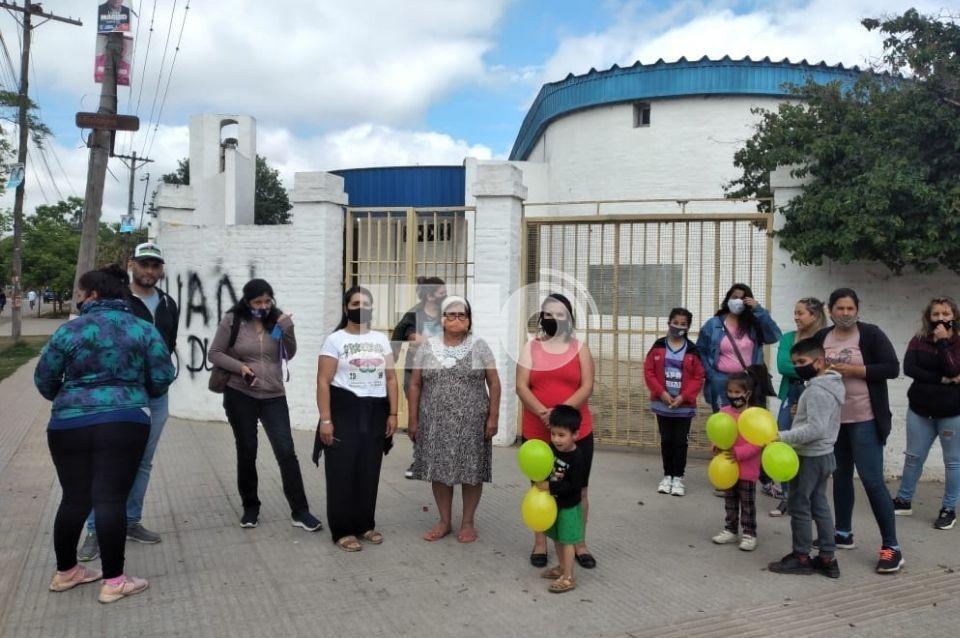 Durante la mañana de este jueves, un grupo de padres y madres hicieron un abrazo simbólico a la escuela Ceferino Namuncurá, ubicada en Misiones y 12 de octubre (barrio Yapeyú).