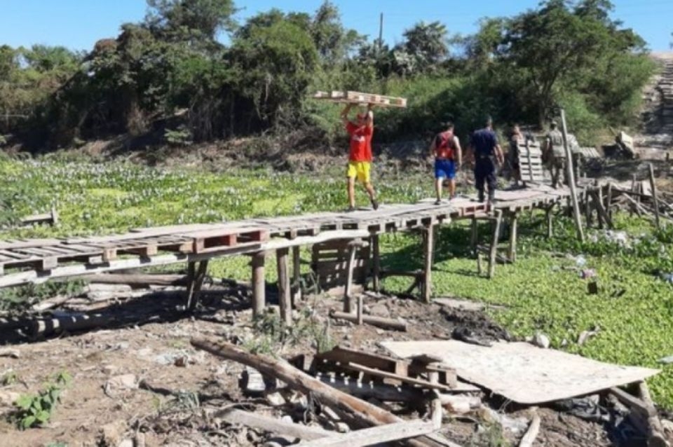 El encargado de hacerlos cruzar la frontera llegó al Aeropuerto Silvio Pettirossi a bordo de una camioneta y llevó al grupo de argentinos hasta la orilla del Río Pilcomayo, frontera natural entre la Argentina y Paraguay. El paso fronterizo por el que cruzaron era una simple hilera de pallets de madera que oficiaba de puente: ese tipo de caminos suelen ser provisorios, ya que la Policía realiza operativos para desarmarlos, pero luego vecinos de ambas orillas los vuelven a montar. Los viajeros no podía creer la insólita situación que estaban viviendo: estaban cruzando de manera ilegal desde Paraguay, a través de un improvisado puente de madera, con sus valijas a cuestas y con el riesgo latente de ser detenidos por las Fuerzas de Seguridad de alguno de los dos países.