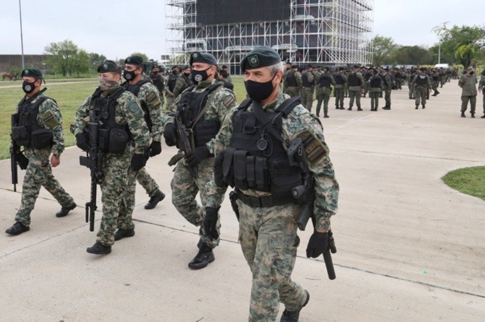Los gendarmes arribaron al Museo del Deporte a las 8:30, procedentes en su mayoría de Santiago del Estero, Ezeiza y Campo de Mayo.