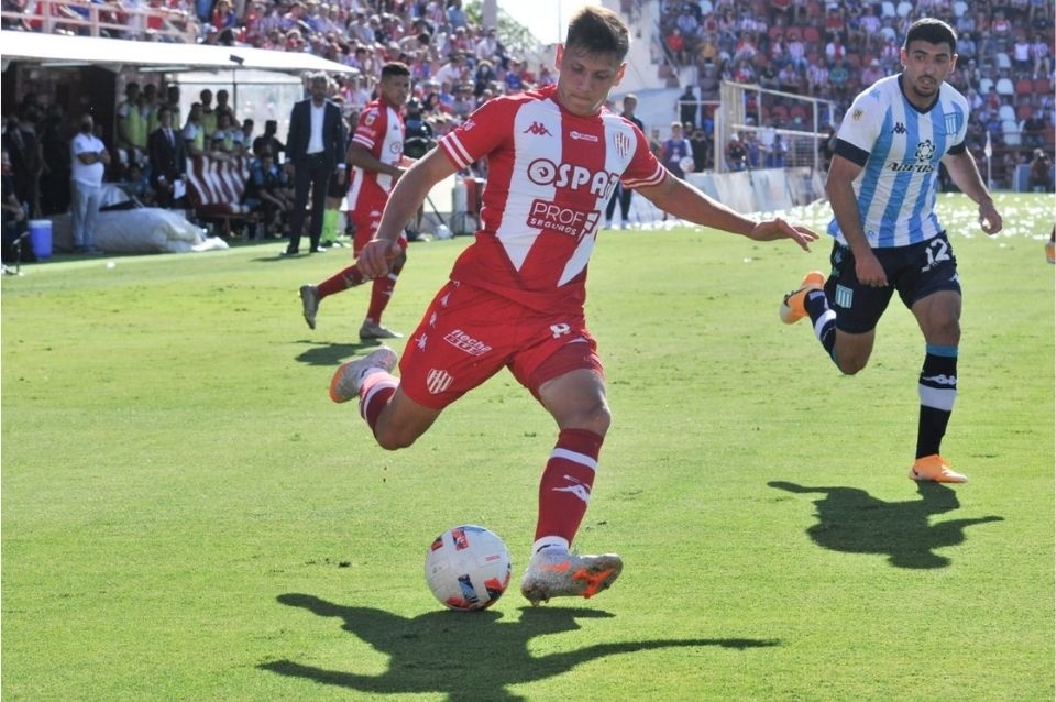Unión salió con la tónica de esperar y ver cómo se plantaba Racing, que quería llevar el juego por las bandas. Tenía la pelota en el comienzo, pero cuando intentaba acelerar, el local presionaba y salía rápido, con Juan Nardoni como bandera. Fue así como a los 8', casi marca el primero después de un pase en profundidad que Enzo Roldán definió picándola y no fue gol porque justo la sacó en la línea Mauricio Martínez. ¡Clarísima!