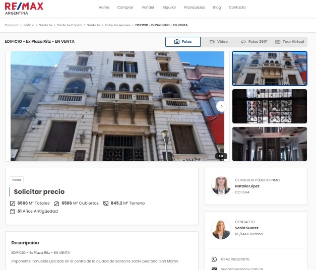 "Se vende completo, todo el edificio (...) la comercialización la plantean como un proyecto, un concepto, no que se vuelvan oficinas, sino un concepto que sume a la ciudad, un concepto de atractivo turístico" contó Sonia, la vendedora por LT10.
