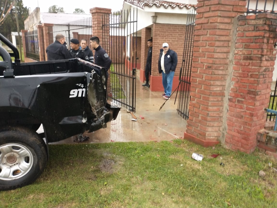 Este sábado a las 7 de la mañana, en ruta nacional 11 y calle Tierra del Fuego, tramo comprendido entre la ciudad de Recreo y el distrito Recreo Sur, y por el reventón de un neumático, la camioneta patrullero N° 8328 de la Policía de Acción Táctica PAT, que transitaba desde el cardinal sur hacia el norte, se estrellera contra un cantero lateral en el ingreso de una vivienda. Uno de los dos policías que viajaba en móvil policial fue derivado con politraumatismos al hospital protomédico Manuel Rodríguez, y luego de recibir las primeras curaciones fue derivado al nuevo hospital Iturraspe, donde quedó internado en observación.