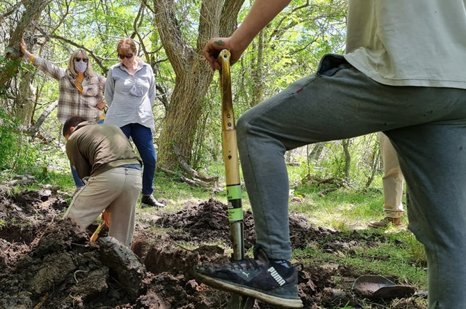 "Con ese sistema se detectó toda una serie de rasgos en la superficie del campo San Pedro, y lo que se está haciendo ahora es chequear esos rasgos" con excavaciones de distintas dimensiones, con retroexcavadoras y palas.