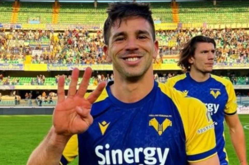 El ex futbolista de River Plate y Banfield anotó un doblete en la primera parte, a los 30 y 36 minutos, y facturó otra vez por duplicado en el segundo, a los 17 y 47 cuando ya expiraba el encuentro en el estadio Marcantonio Bentegodi.