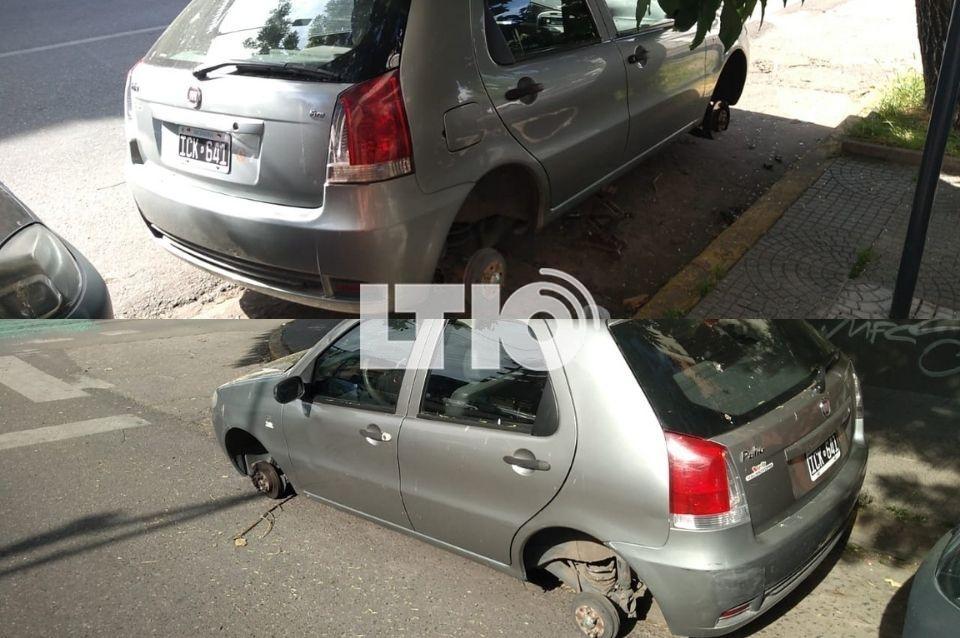 Durante la madrugada de este miércoles, delincuentes le robaron las cuatro ruedas a un Fiat Palio que estaba estacionado en Ituzaingó y Marcial Candioti, pleno barrio Candioti, una de las zonas más caras para vivir en Santa Fe.