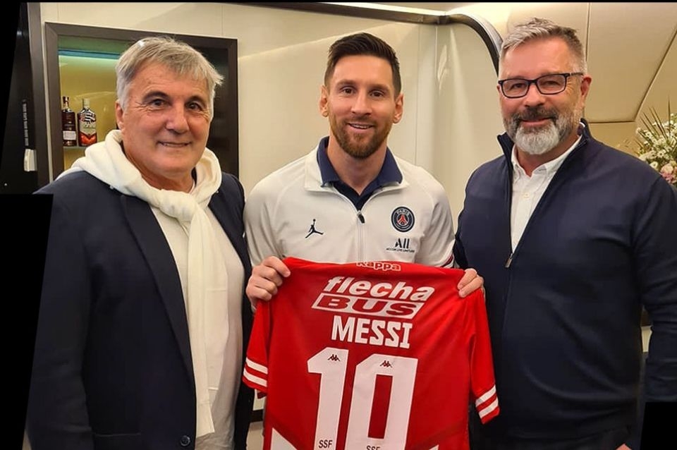 Allí le obsequiaron una camiseta de Unión, con el apellido Messi, con la cual posó en una foto que se hizo viral junto al candidato a presidente y el exayudante de Pachorra en la Albiceleste.