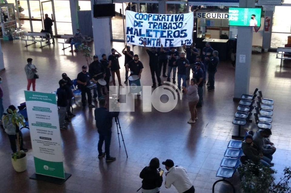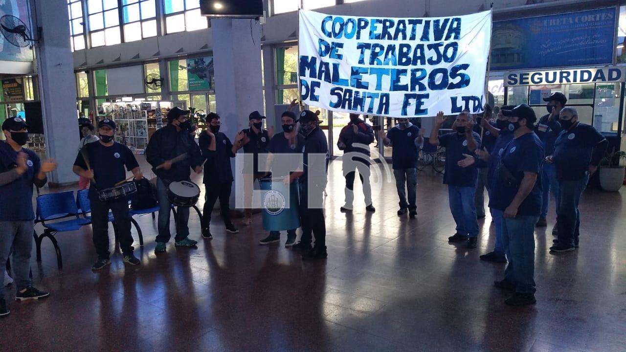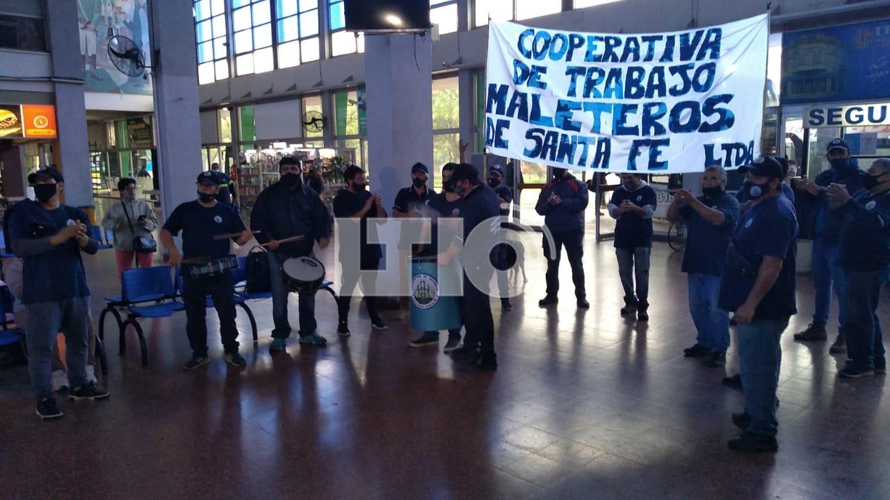 Este viernes por la mañana, la Cooperativa de Maleteros de Santa Fe llevaron adelante una jornada de protesta en el hall de la Terminal de Ómnibus.