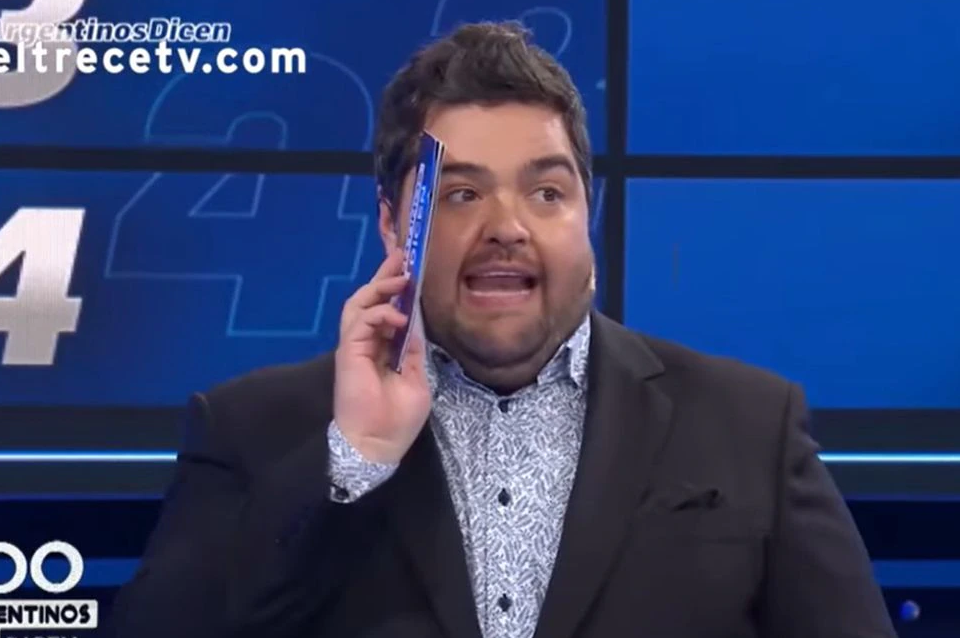 El protagonista se presentó como el conductor de “100 argentinos dicen”, junto con las tarjetas del programa de juegos y que recibió la respuesta del presentador.