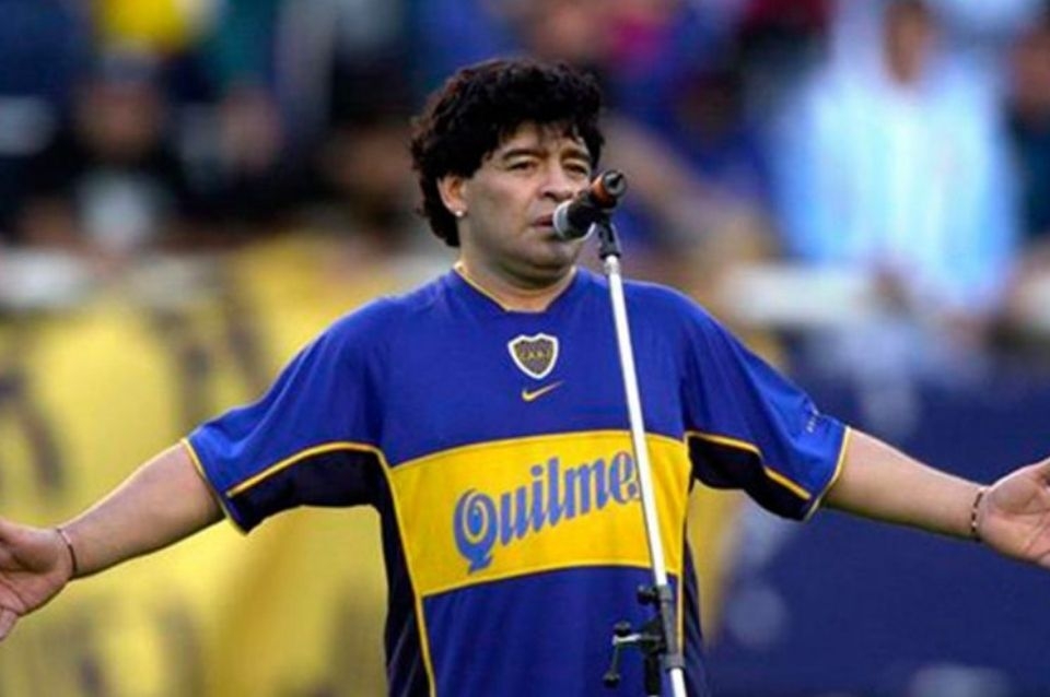 Diego fue homenajeado en La Bombonera un 10 de noviembre, pero de 2001. "Porque se equivoque uno, no tiene que pagar el fútbol", dijo en su discurso.