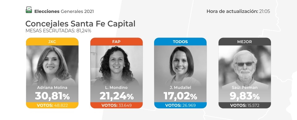 Segundo se ubica Pedro Uliambre- actual presidente comunal- representando al Frente de Todos con 3.540 votos. Y último Leonardo Lizarraga de Primero Santa Fe, con solo 326 votos.
